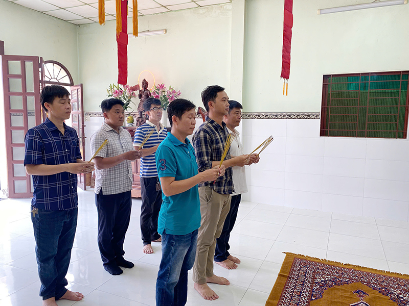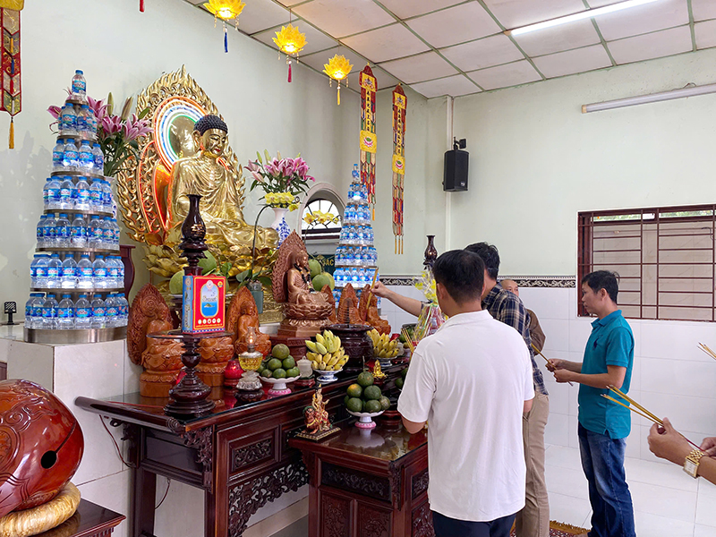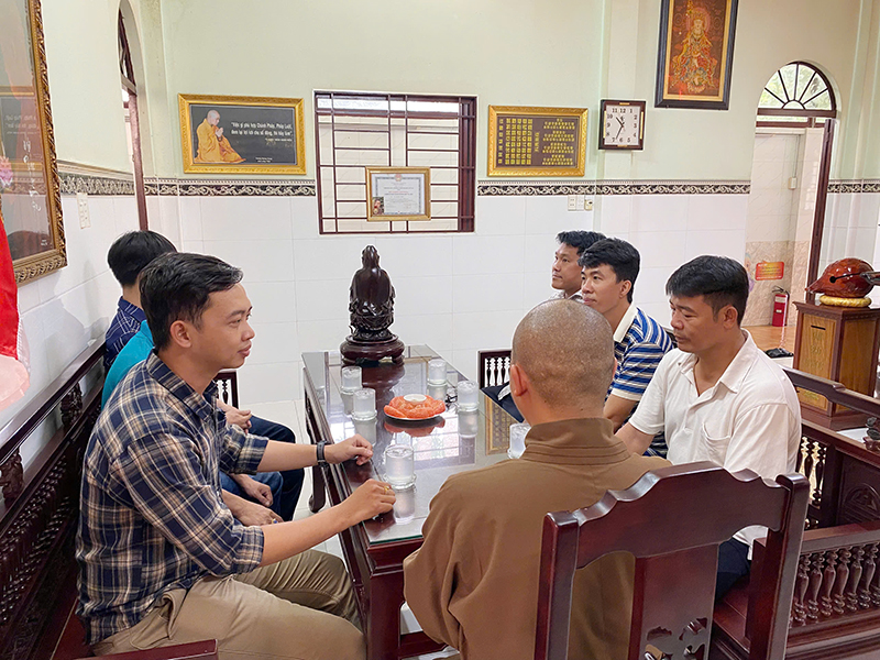 Đoàn do Ông Trần Trung Kiên Cán bộ công an xã, cùng quý vị lãnh đạo công an xã Phú Hòa Đông, tiếp đoàn có Đại đức Thích Hạnh Hiếu - ủy viên thường trực Ban thông tin truyền thông GHPGVN Tp. Hồ Chí Minh, trụ trì chùa Hạnh Đức.