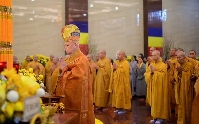 Hòa thượng cũng đã có lời khánh chúc đến Đức Đệ tứ Pháp chủ GHPGVN và chư Tăng Ni, Phật tử một mùa xuân thân tâm an lạc. Dịp này, Hòa thượng Trưởng ban Tổ chức đặc biệt nhấn mạnh đến ý nghĩa và tinh thần cốt lõi của pháp hội cũng như việc cầu nguyện là tam nghiệp trang nghiêm, thanh tịnh.