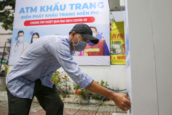 Chiều 5-8, máy "ATM khẩu trang" miễn phí đã chạy thử tại địa chỉ 204B Vườn Lài, quận Tân Phú, TP HCM và được nhiều người dân quan tâm.