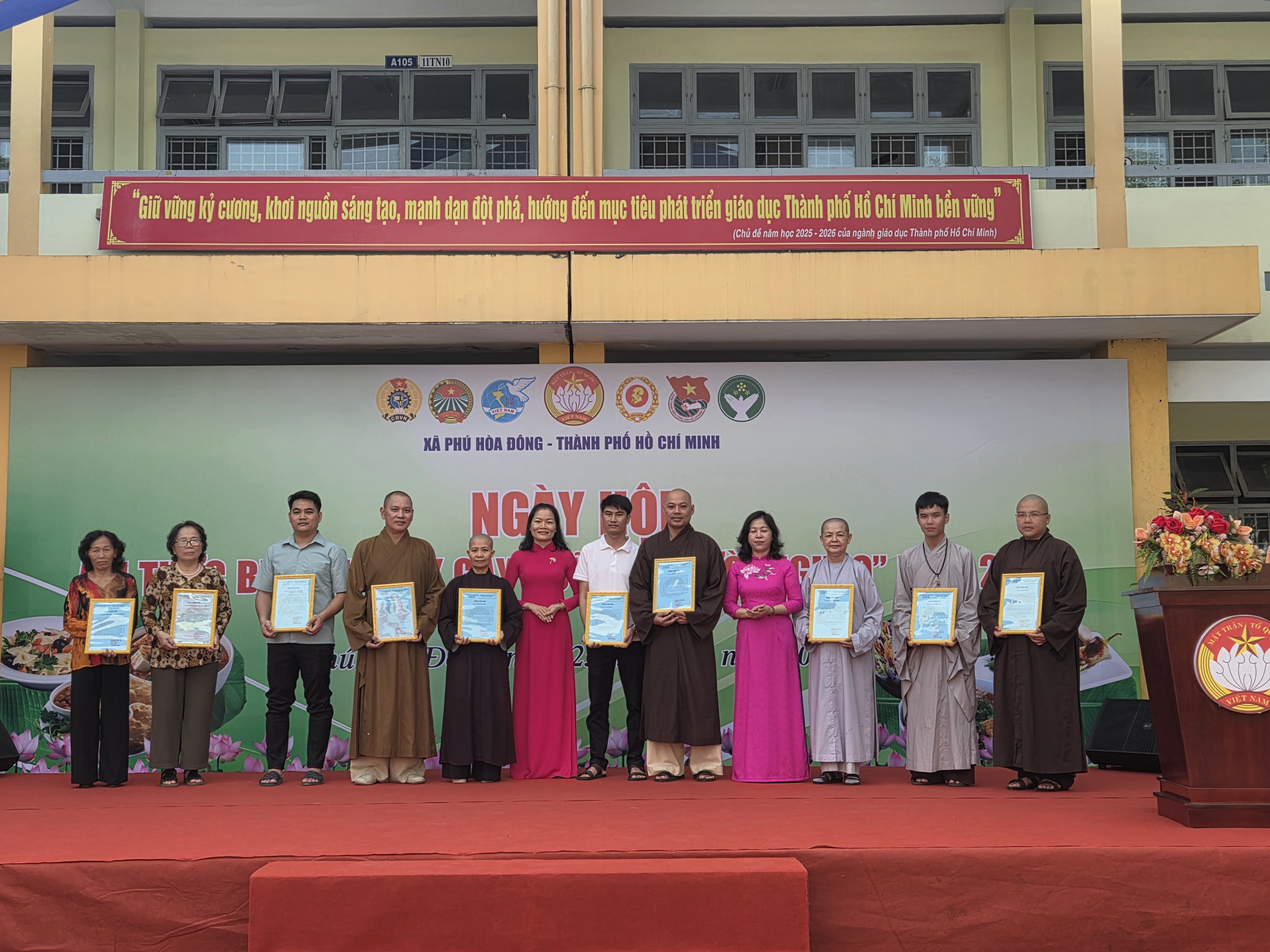 Ẩm thực chay được tổ chức trang nghiêm tại trường THPT Trung Phú - xã Phú Hòa Đông, Tp. Hồ Chí Minh, với sự tham dự của các đoàn thể tổ chức chính trị, cơ sở tôn giáo, quý công ty, mạnh thường quân trên địa bàn xã Phú Hòa Đông.