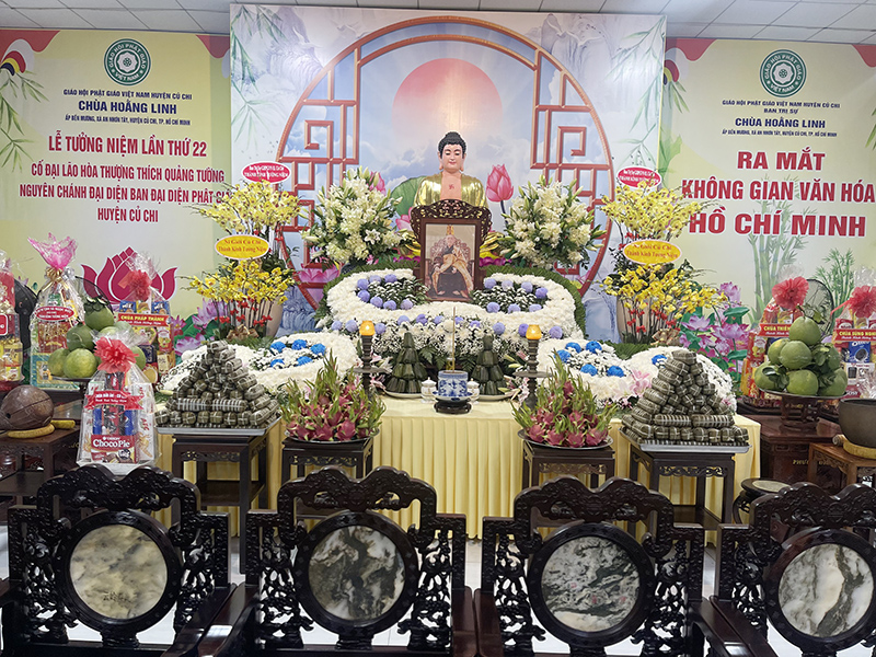 Trên tinh thần tri ân và báo ân, môn đồ đệ tử đã đồng thuận cử hành lễ tưởng niệm lần thứ 22 cố Hòa thượng Thích Quảng Tường (Nguyên chánh đại diện Phật giáo huyện Củ Chi) tại chùa Hoằng Linh (xã An Nhơn Tây - huyện Củ Chi).