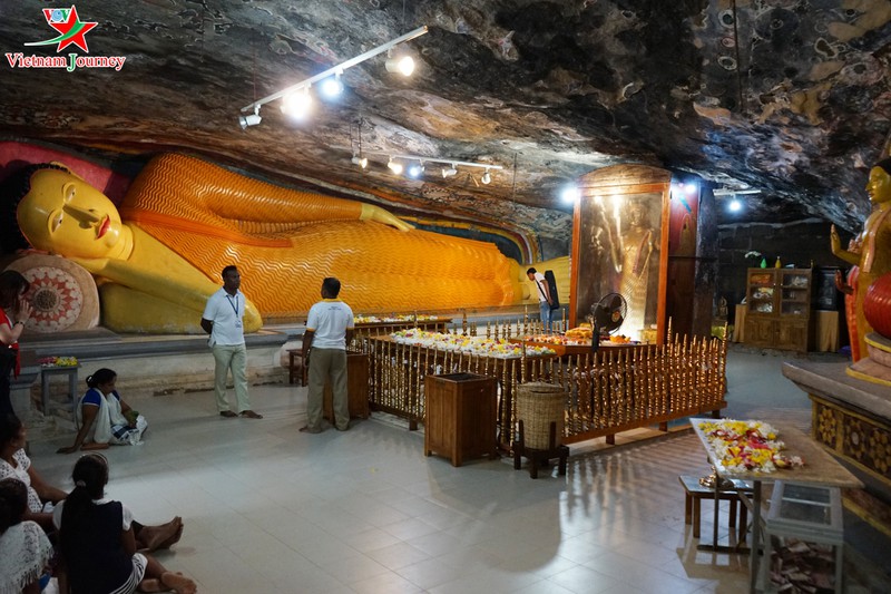 Người dân Sri Lanka đến chùa thường không mang đồ lễ cầu kỳ, chỉ đơn giản thắp hương ở bên ngoài điện và dâng hoa.