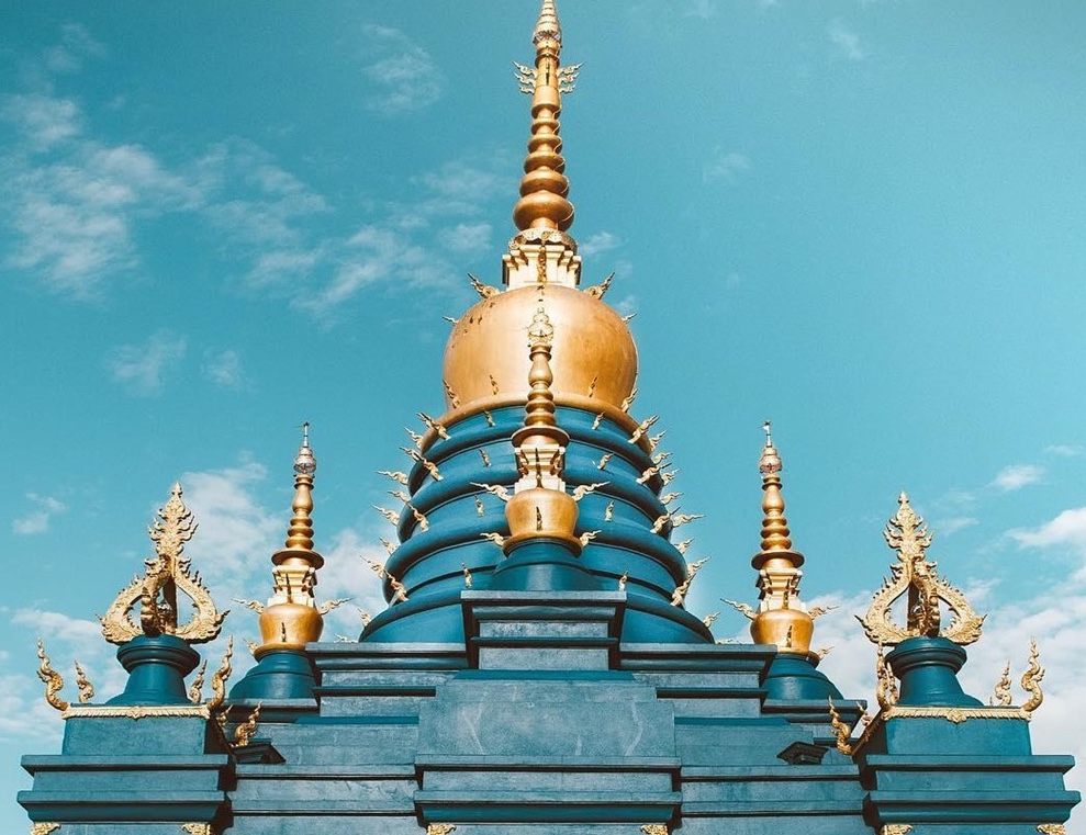 Ngôi chùa Wat Rong Seur Ten là một trong những niềm tự hào của thành phố Chiang Rai hiện lên lộng lẫy với một sắc xanh đậm. Sau ngôi chùa trắng tinh Wat Rong Khun, công trình màu xanh nổi bật này là một trong những điểm đang được rất nhiều Phật tử, du khách người quan tâm và ghé thăm. Ảnh: Sưu tầm.