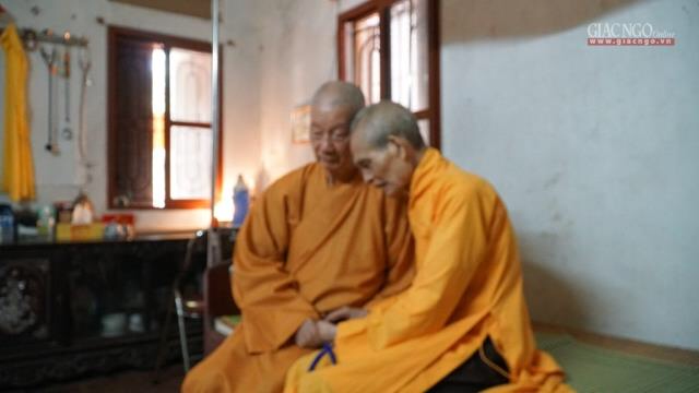 Nhị vị tôn túc trong đạo tình tại phương trượng tổ đình Viên Minh, trưa ngày 11-5