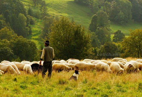 Có một người chăn cừu đang đi về phía trước, bước chân đều từ trái sang phải. Theo sau anh ta, có một con cừu lẽo đẽo đi theo, mặc dù nó không bị trói bằng dây, nhưng vẫn theo bước người chăn cừu như hình với bóng, cũng đi từ trái sang phải, không rời một bước.